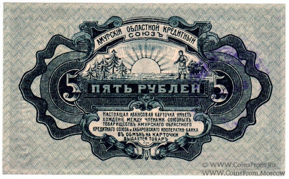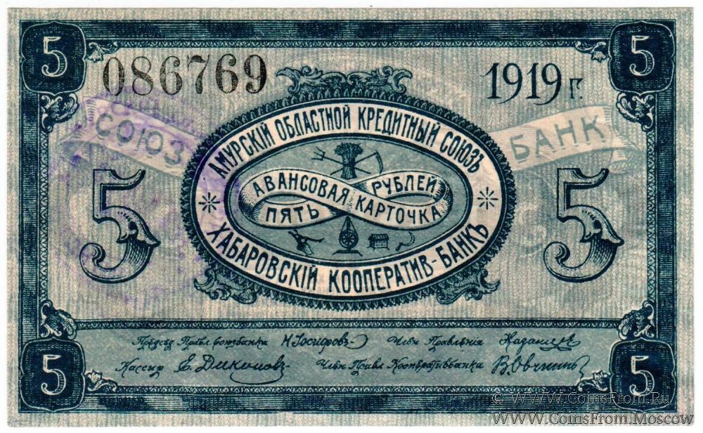Авансовая Карточка 1919 г. Бумага белая. Печать Амурского Областного Кредитного Союза. Хабаровский Кооператив-Банк.