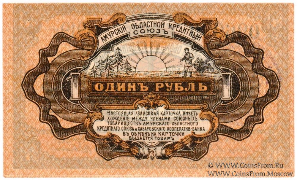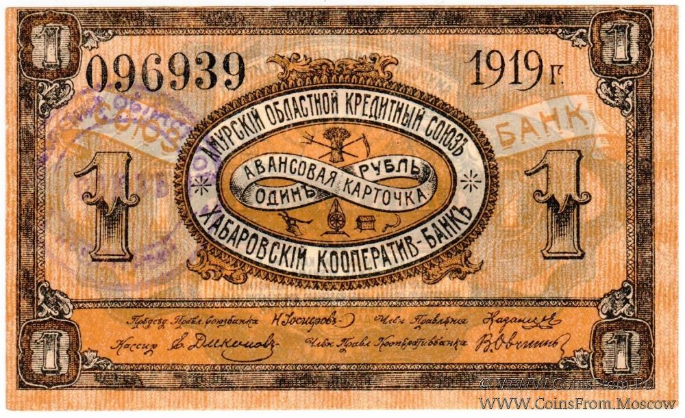 Авансовая Карточка 1919 г. Печать Амурского Областного Кредитного Союза на аверсе. Хабаровский Кооператив-Банк.