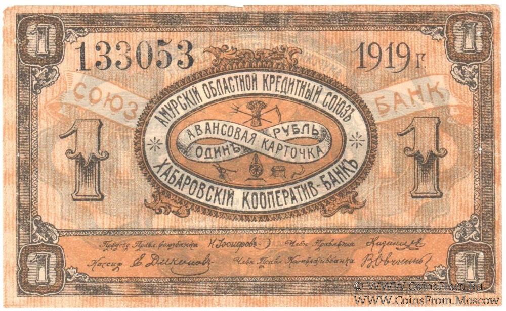 Авансовая Карточка 1919 г. Без печати. Амурский Областной Кредитный Союз. Хабаровский Кооператив-Банк.