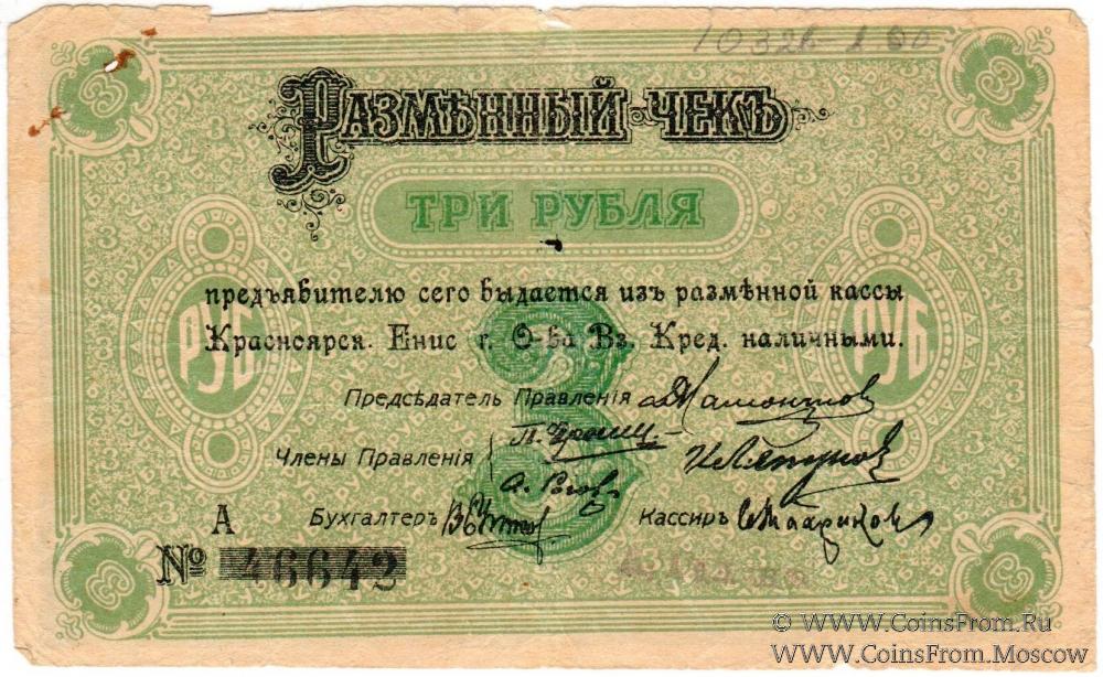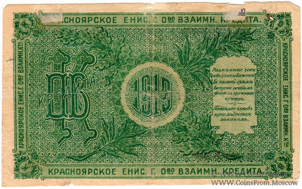 Серия А. Разменный чек 1919 г. 2-й выпуск. Красноярское Общество Взаимного Кредита.
