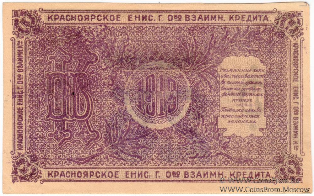 БРАК: без черного текста на аверсе. Без номера и серии. Разменный чек 1919 г. 3-й выпуск. Красноярское Общество Взаимного Кредита.