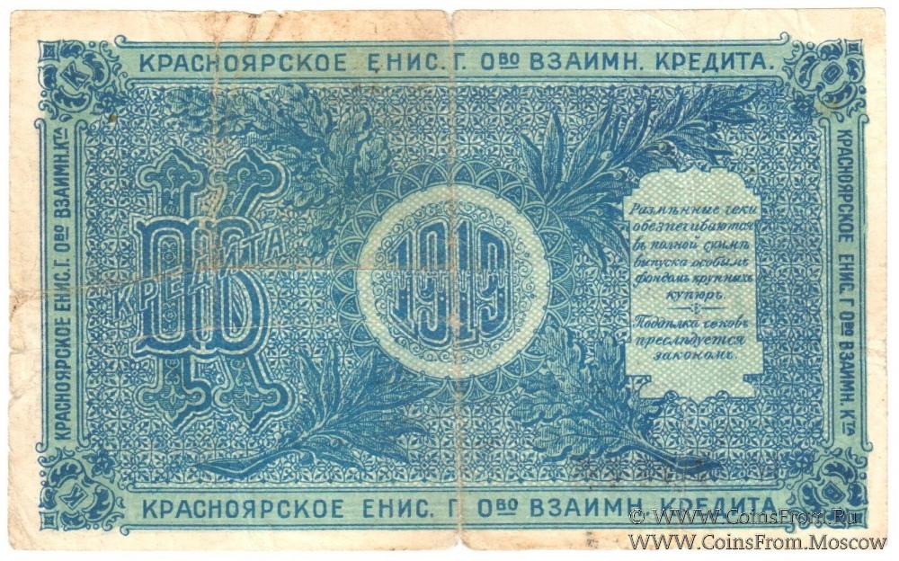 Серия А. Разменный чек 1919 г. 2-й выпуск. Красноярское Общество Взаимного Кредита.