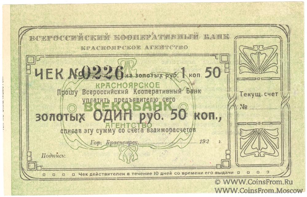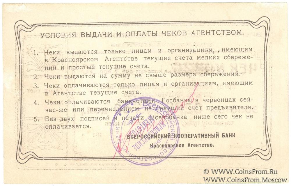 Печать круглая: "КРАСНОЯРСКОЕ АГЕНТСТВО" (по центру в две строки) / "* Всероссийский Кооперативный Банк *" (по кругу)