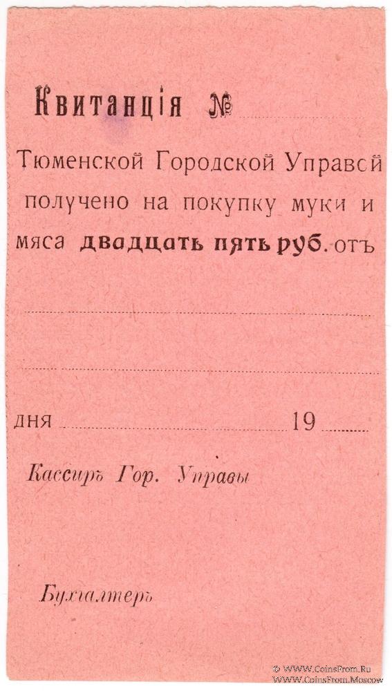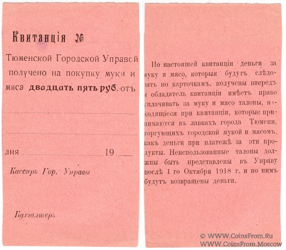Квитанция без даты (1918 г.). Тюменская Городская Управа.