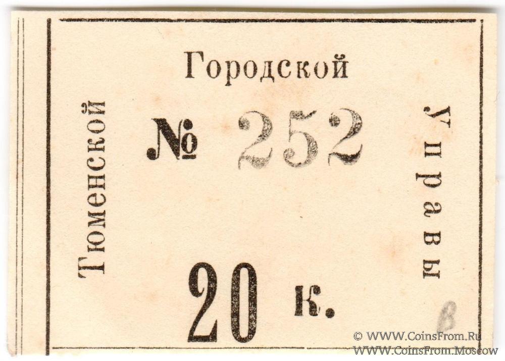 Без даты (1918 г.). Цифры номинала прямые и узкие. Тюменская Городская Управа.