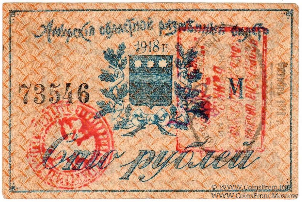 Амурский Областной Разменный Билет 1918 г. С регистрационными штампами (при Колчаке). Штамп Благовещенского ОГБ.