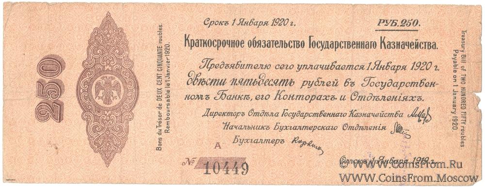 Выпуск 1 января 1919 г. Серия А. Номер 5-значный. 5% Краткосрочные Обязательства Государственного Казначейства.