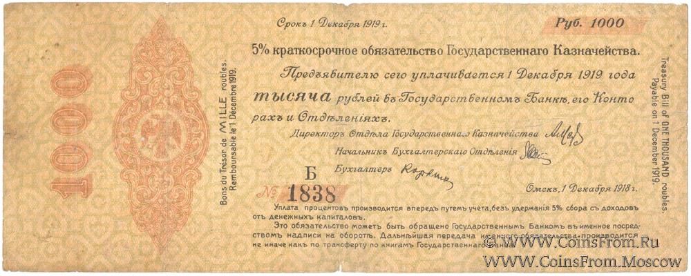 Выпуск 1 декабря 1918 г. Серия Б. 5% Краткосрочные Обязательства Государственного Казначейства.