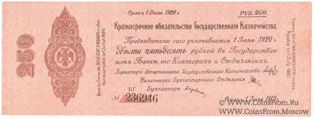 Выпуск 1 июля 1919 г. Две литеры в серии, без тире: БГ. Номер большой. 5% Краткосрочные Обязательства Государственного Казначейства.