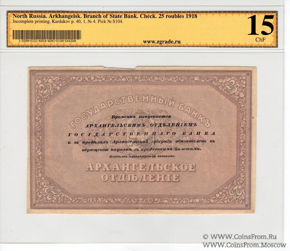 Чек 1918 г. (без даты), без номера. Бумага серая. БРАК: без текста, подписей на аверсе. Архангельское Отделение Государственного Банка.
