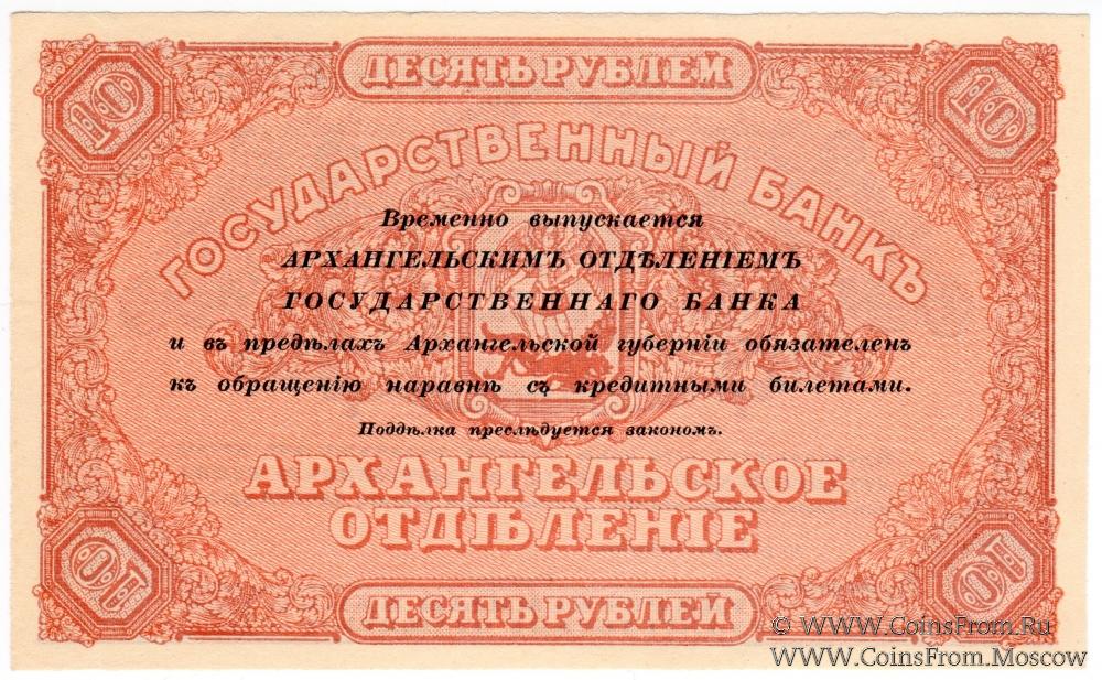Чек без даты (1918 г.). БРАК: без подписей на аверсе, текст под наклоном (влево). Архангельское Отделение Государственного Банка.