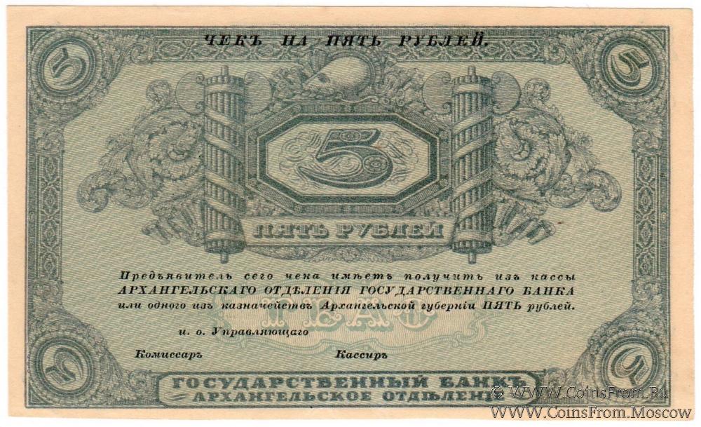 Чек 1918 г. (без даты), без номера. БРАК: без подписей на аверсе. Серый оттенок. Архангельское Отделение Государственного Банка.