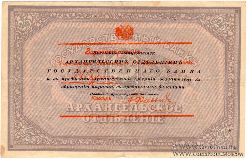 Чек 1918 г. (без даты). Серия - одна литера. Штамп "Зарегистрировано..." на реверсе. Архангельское Отделение Государственного Банка.