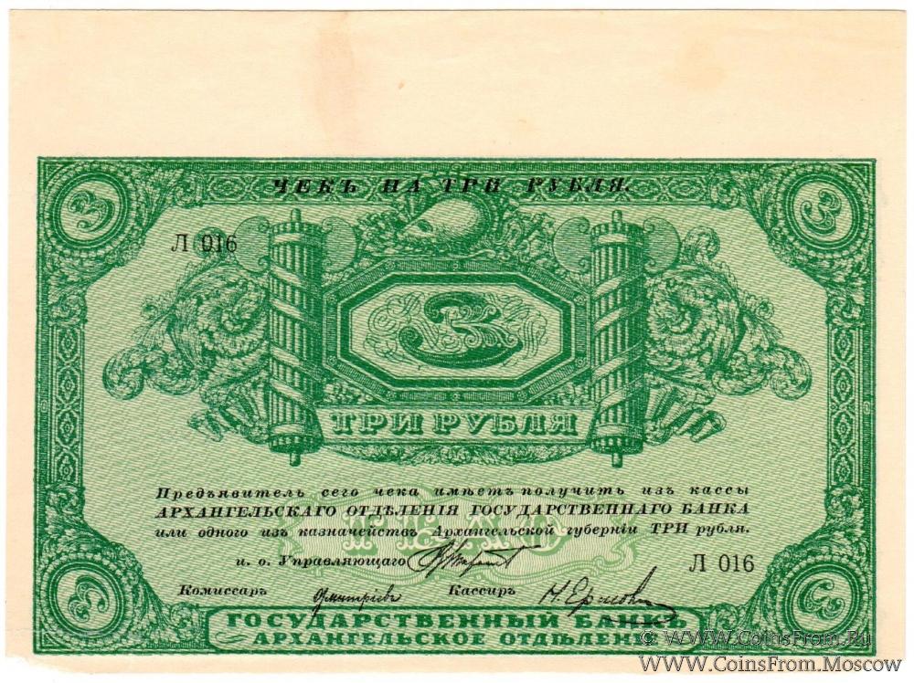Чек 1918 г. (без даты). Серия - одна литера. БРАК обрезки чека. Архангельское Отделение Государственного Банка.