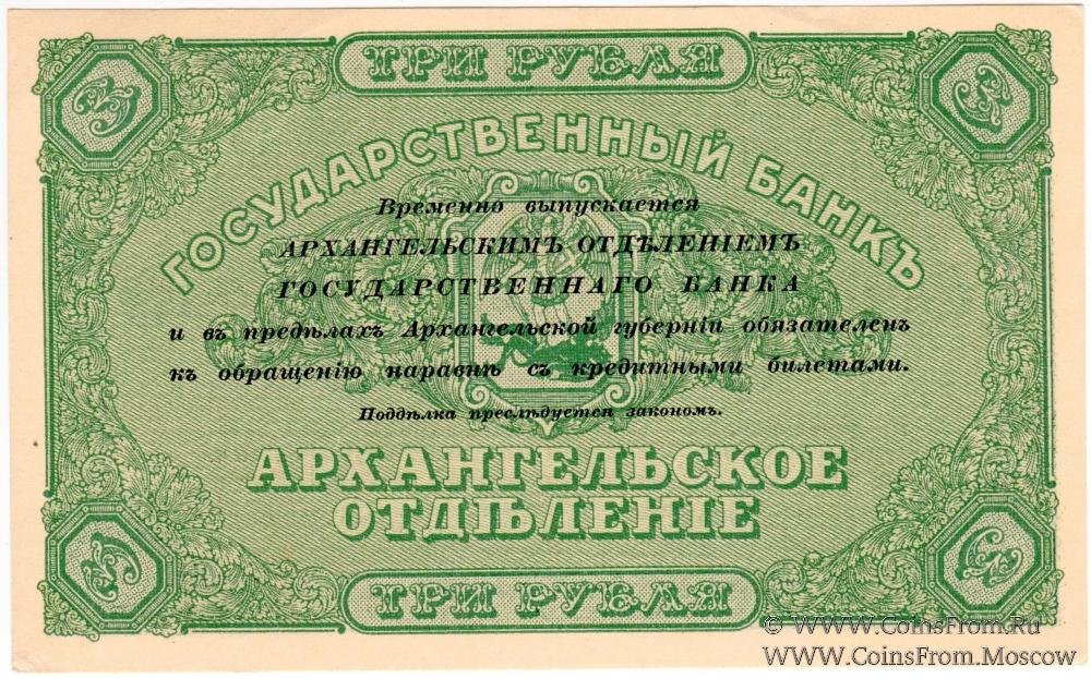 Чек 1918 г. (без даты). Серия - одна литера. Архангельское Отделение Государственного Банка.