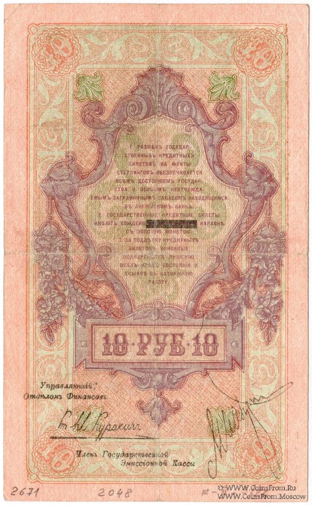 Государственный кредитный билет 1918 г. Серия УО. Надпечатка 2 вариант ("Член государственной эмиссионной кассы").