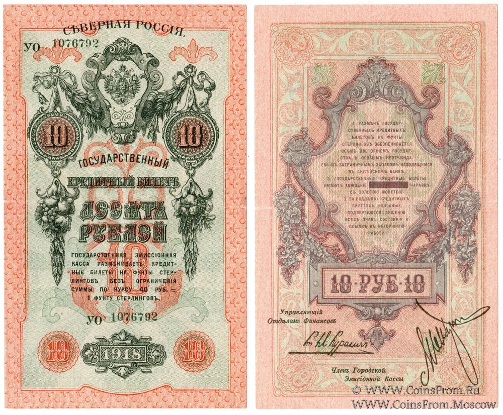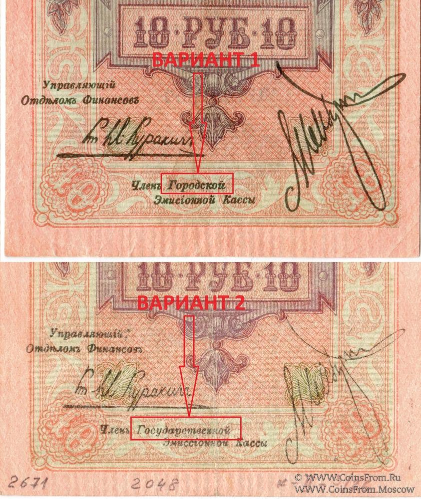 Государственный кредитный билет 1918 г. Серия УО. Надпечатка 1 вариант ("Член городской эмиссионной кассы").