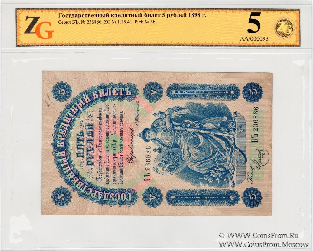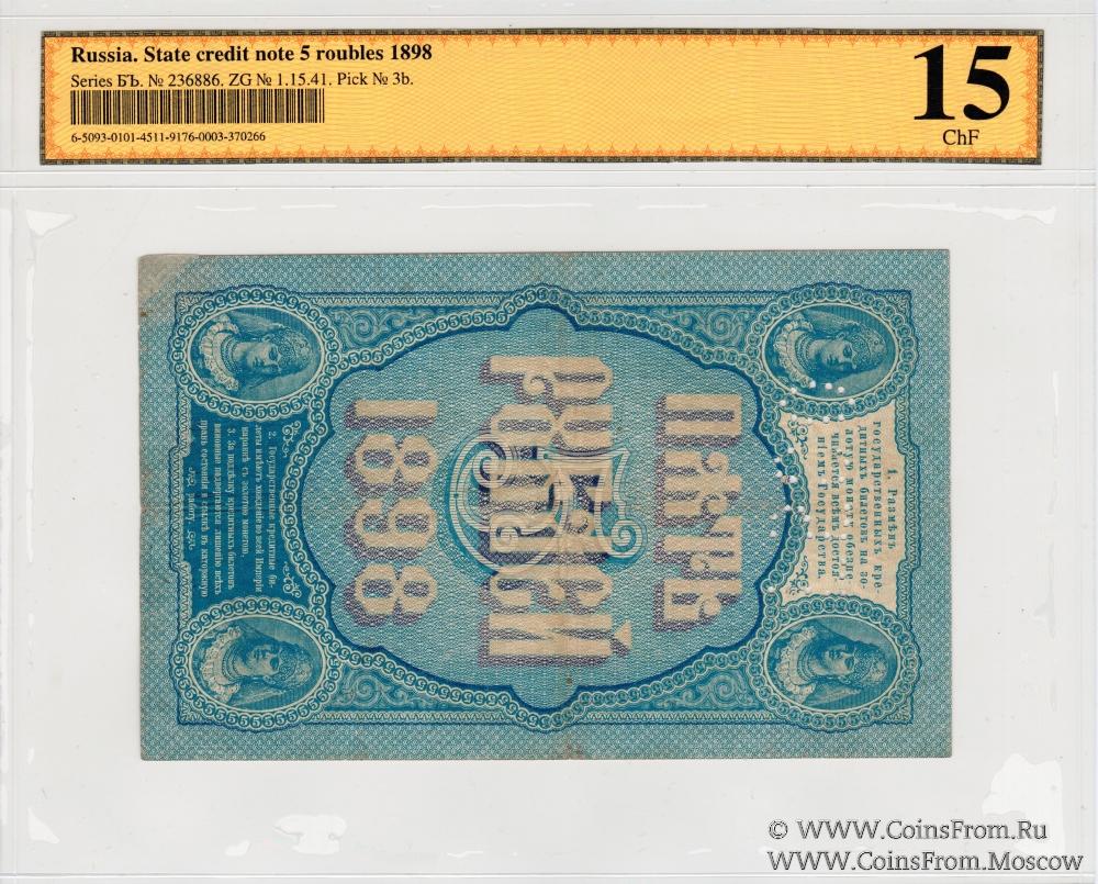 Перфорация ГБСО на государственном кредитном билете 5 рублей образца 1898 г. Данные билета: Серия БЪ (Серии БД - ДЬ). Управляющий - Тимашев С.И. Кассир - Метц. Государственный Банк. Экспедиция заготовления государственных бумаг (ЭЗГБ, Санкт-Петербург).