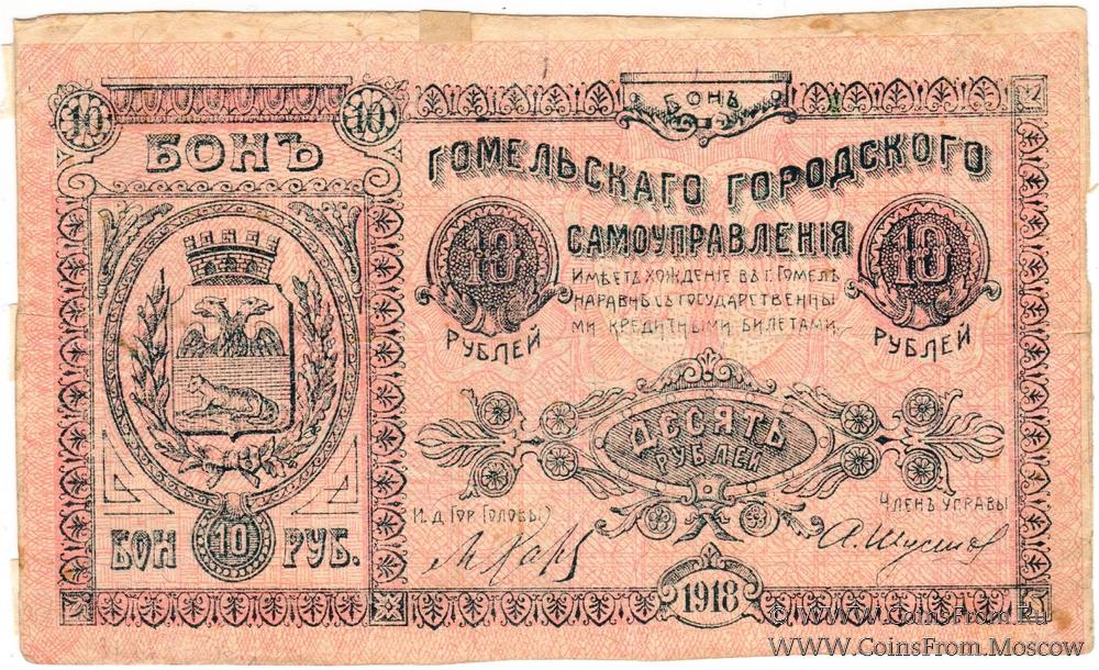 Бон 1918 г. БРАК обрезки: белое поле по краю. Гомельское Городское самоуправление.