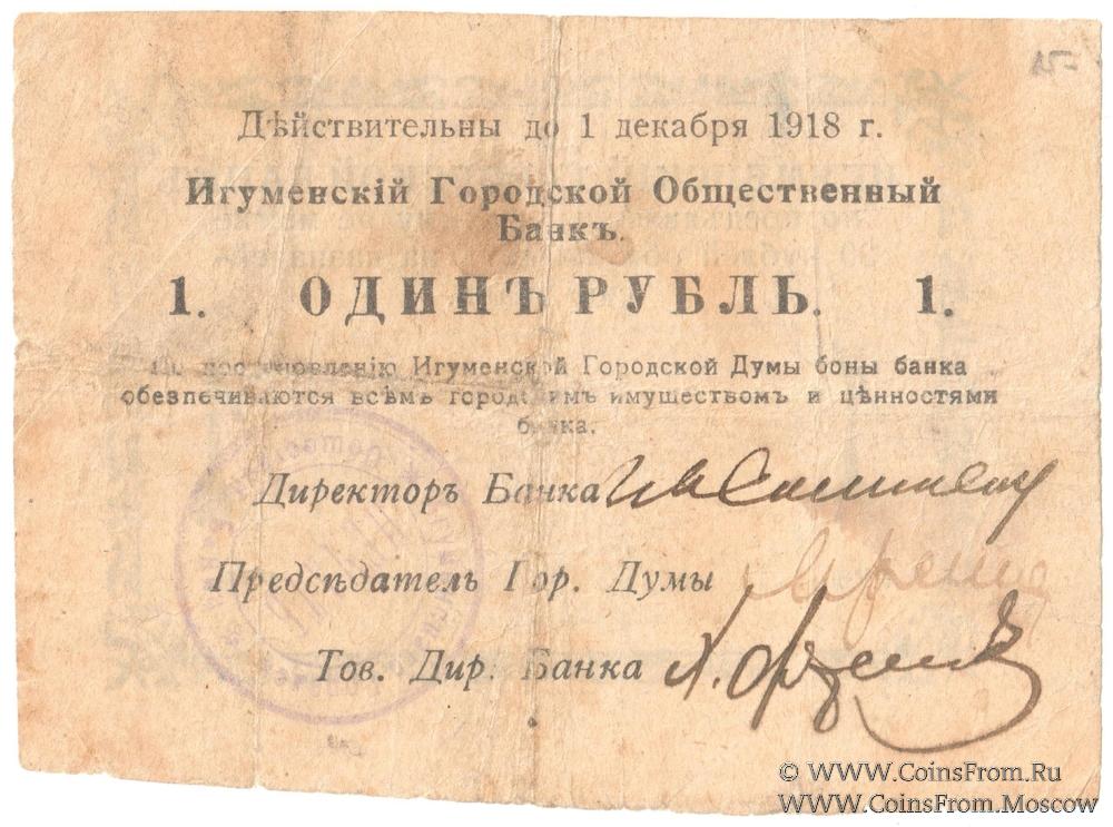 Бон. Действителен до 1 декабря 1918 г. Игуменский Городской Общественный Банк.