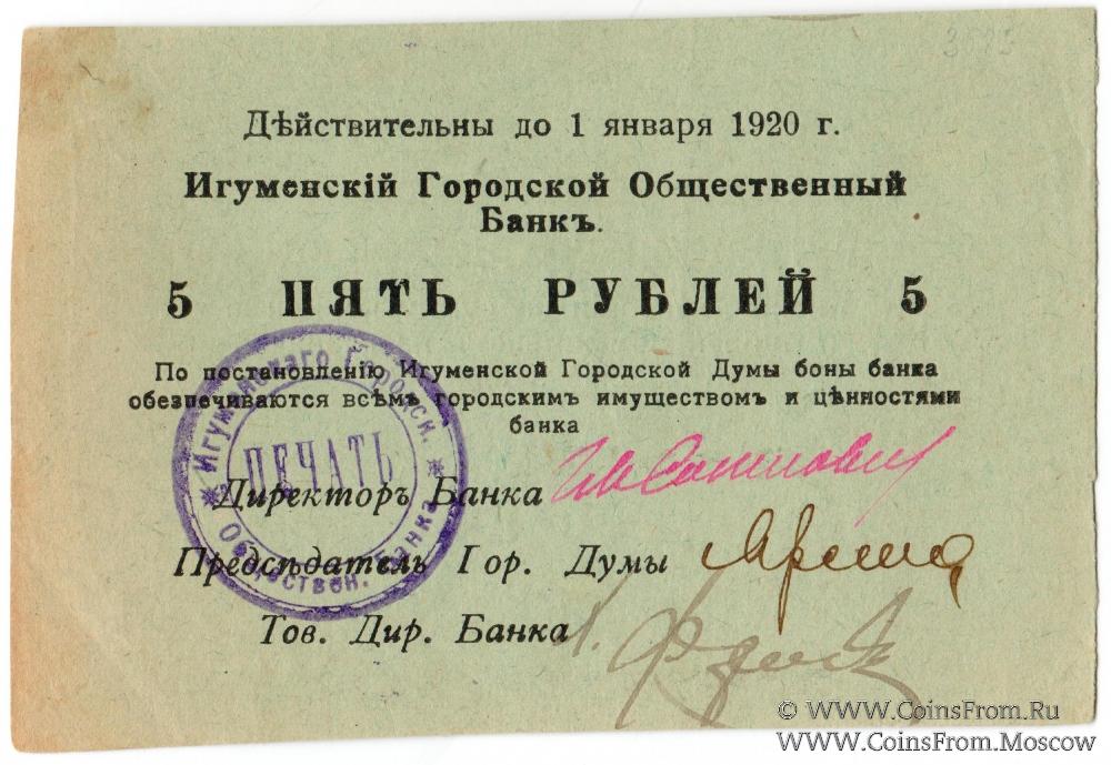 Бон. Действителен до 1 января 1920 г. Игуменский Городской Общественный Банк.