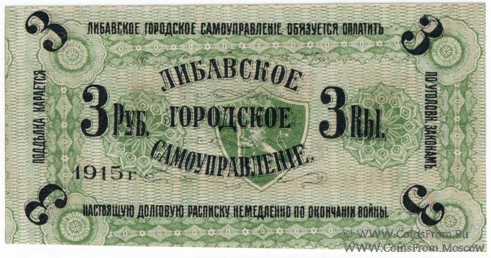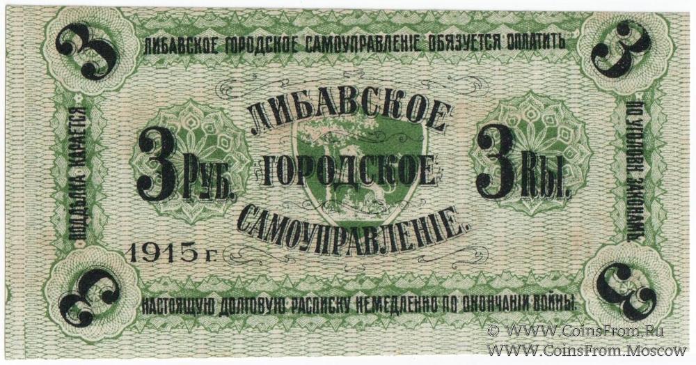 3 рубля 1915 г. (Либава) БРАК