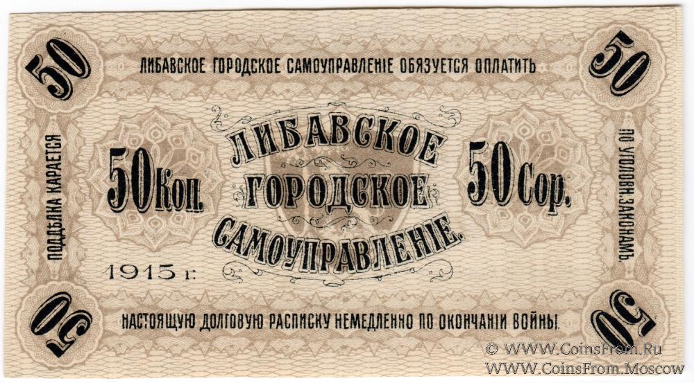 Серия А. Без номера. Фрагменты водяного знака. Долговая расписка 1915 г. Фон серо-коричневый. Либавское Городское Самоуправление.