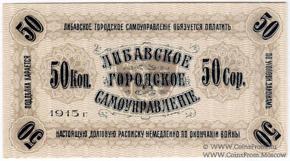 Серия В. Без номера. Фрагменты водяного знака. Долговая расписка 1915 г. Фон серо-коричневый. Либавское Городское Самоуправление.