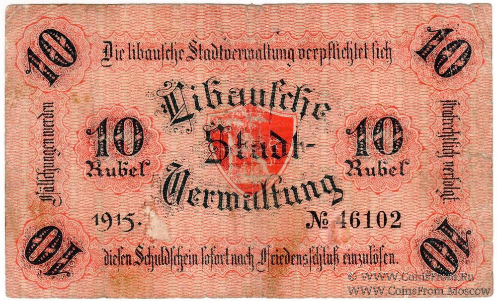 10 рублей 1915 г. (Либава)