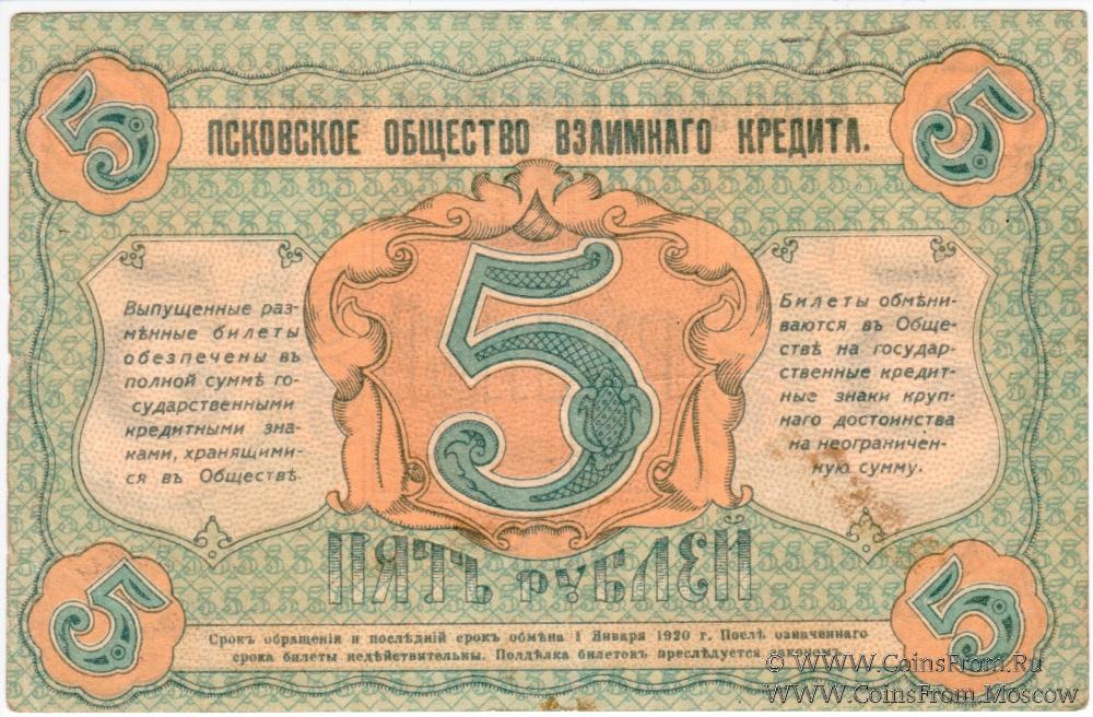 Банковый разменный билет 1918 г. Псковское Общество Взаимного Кредита.