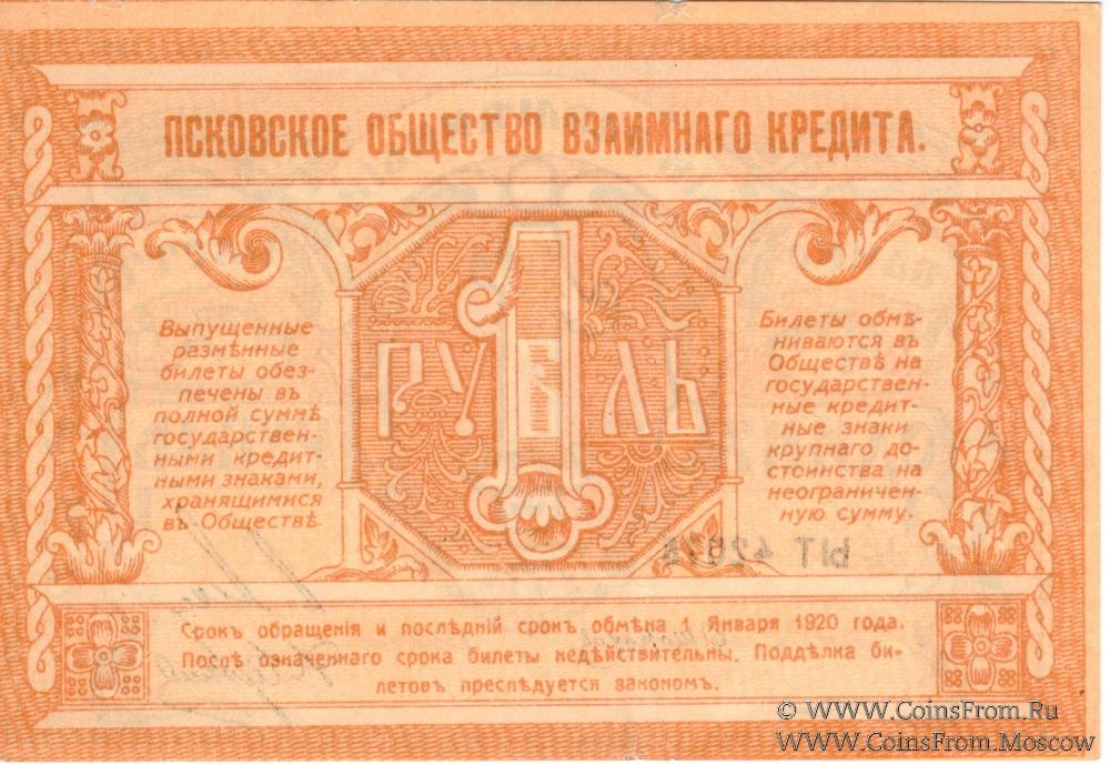 Банковый разменный билет 1918 г. Псковское Общество Взаимного Кредита.
