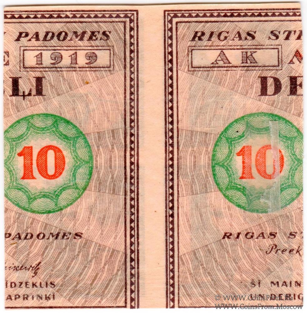 10 рублей 1919 г. (Рига) БРАК