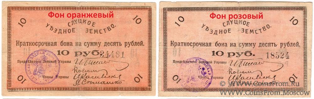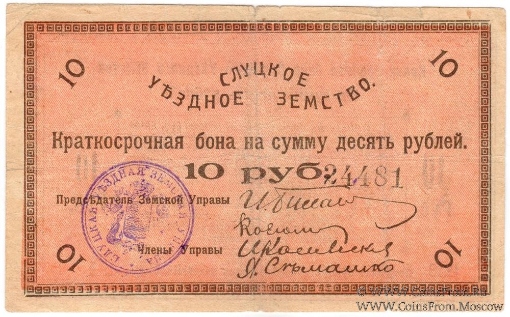 Печать круглая с гербом по центру с надписью: "СЛУЦКАЯ УЪЗДНАЯ ЗЕМСКАЯ УПРАВА *" (по кругу).