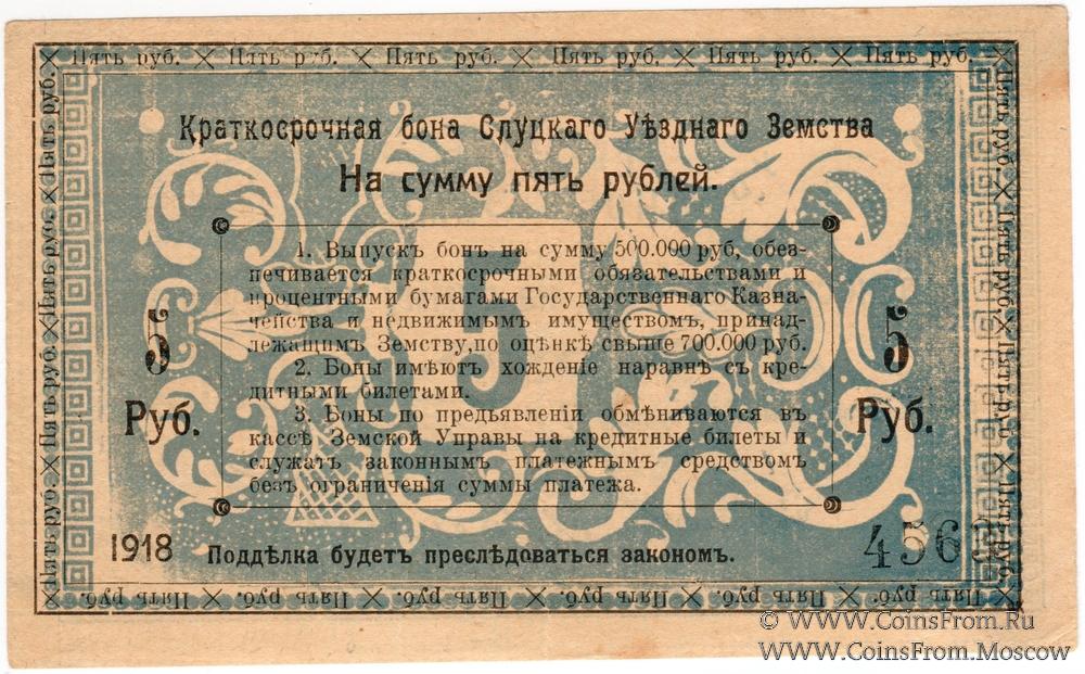 5 рублей 1918 г. (Слуцк)