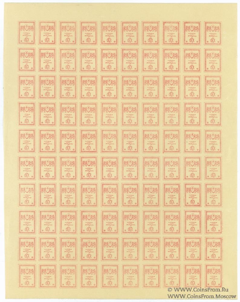Почтовая марка ОКСА. Полный лист 100 шт. Аверс отдельно. Красная.