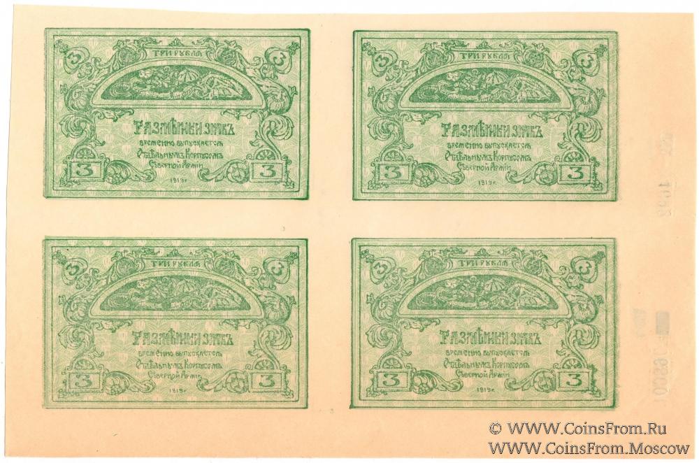 Разменный знак без даты (1919 г.). Квартблок. №№ 001631, 001632, 001636, 001637.