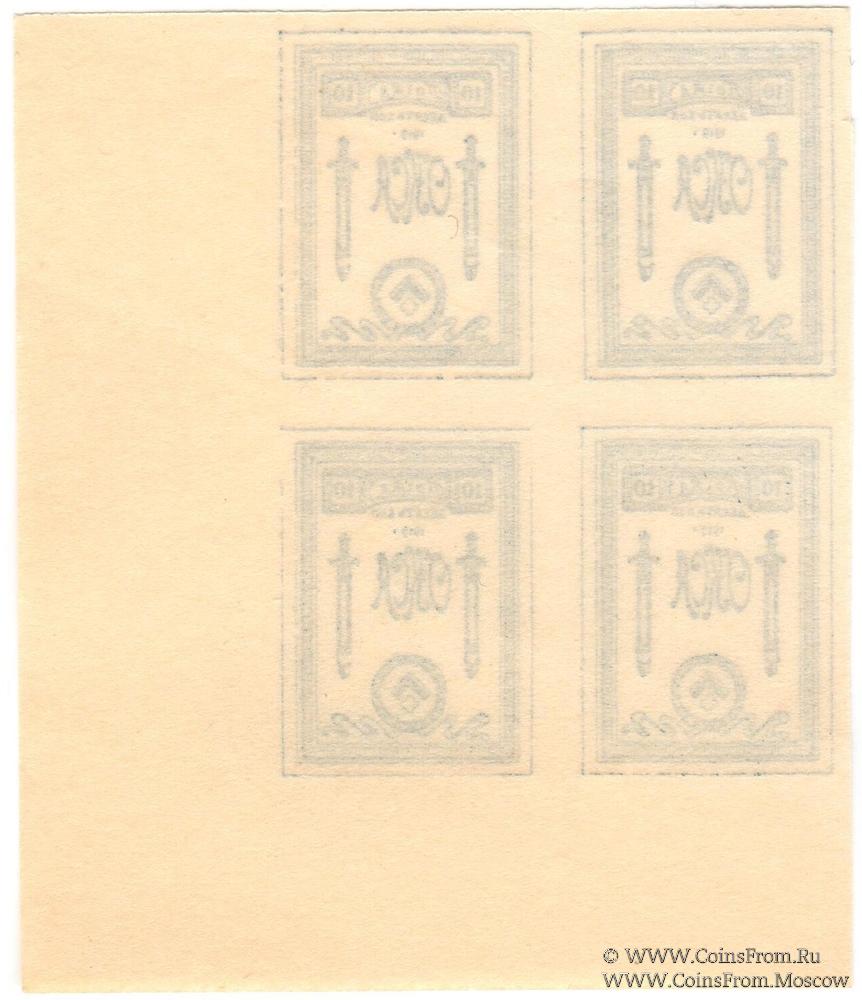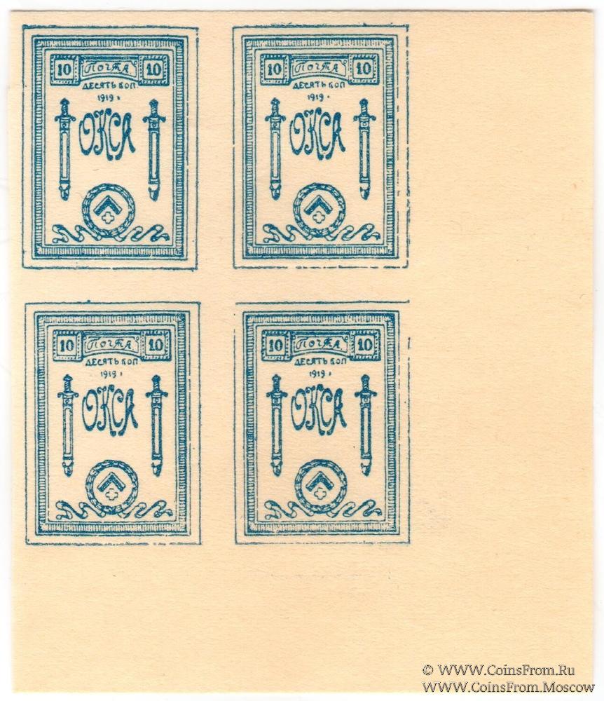 Почтовая марка ОКСА. Квартблок. Край листа. Аверс отдельно. Синяя.