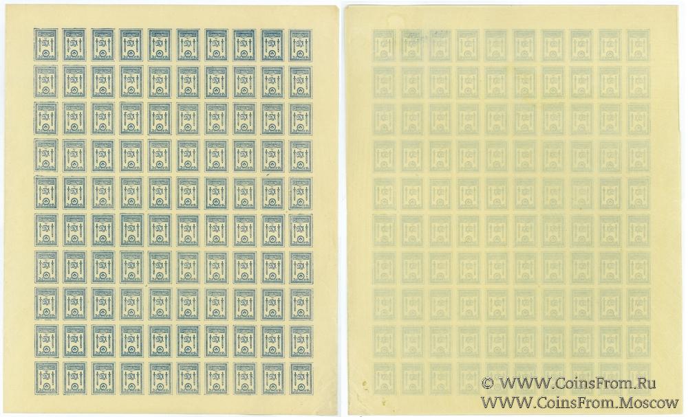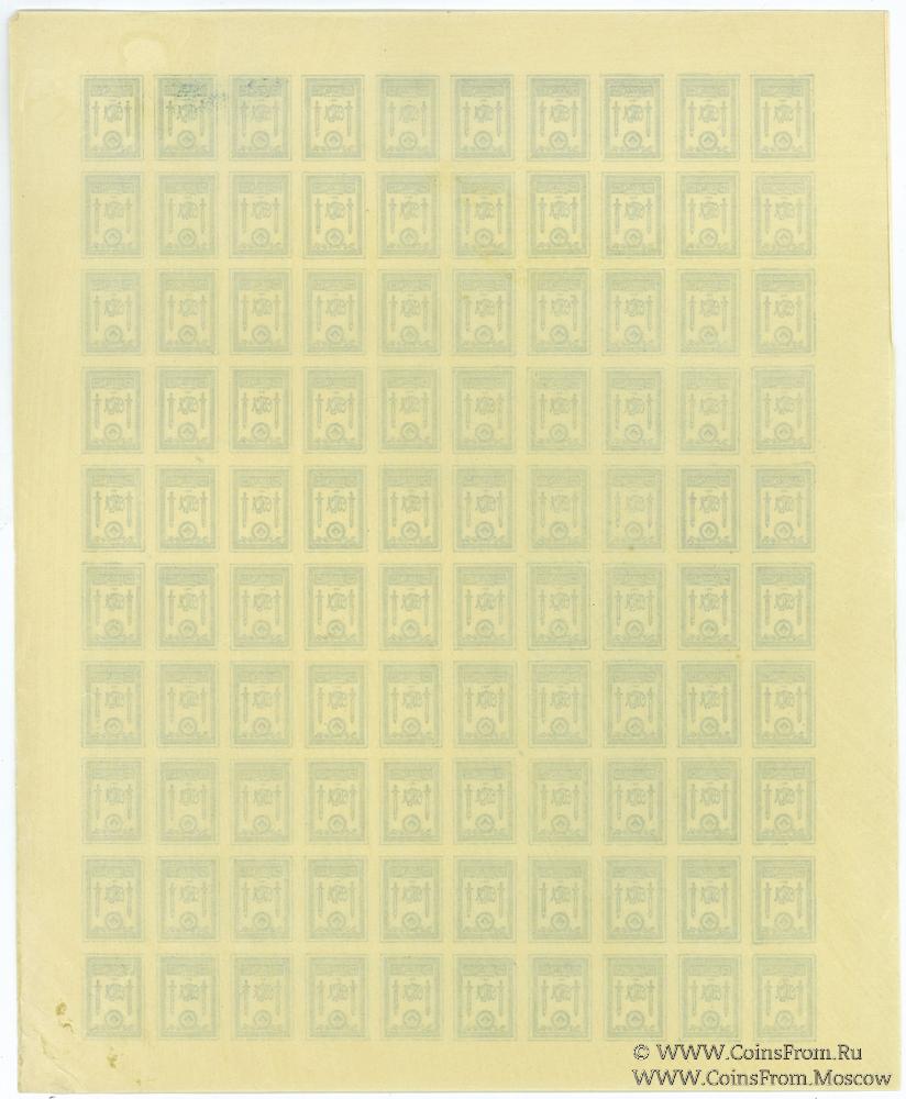 Почтовая марка ОКСА. Полный лист 100 шт. Аверс отдельно. Синяя.