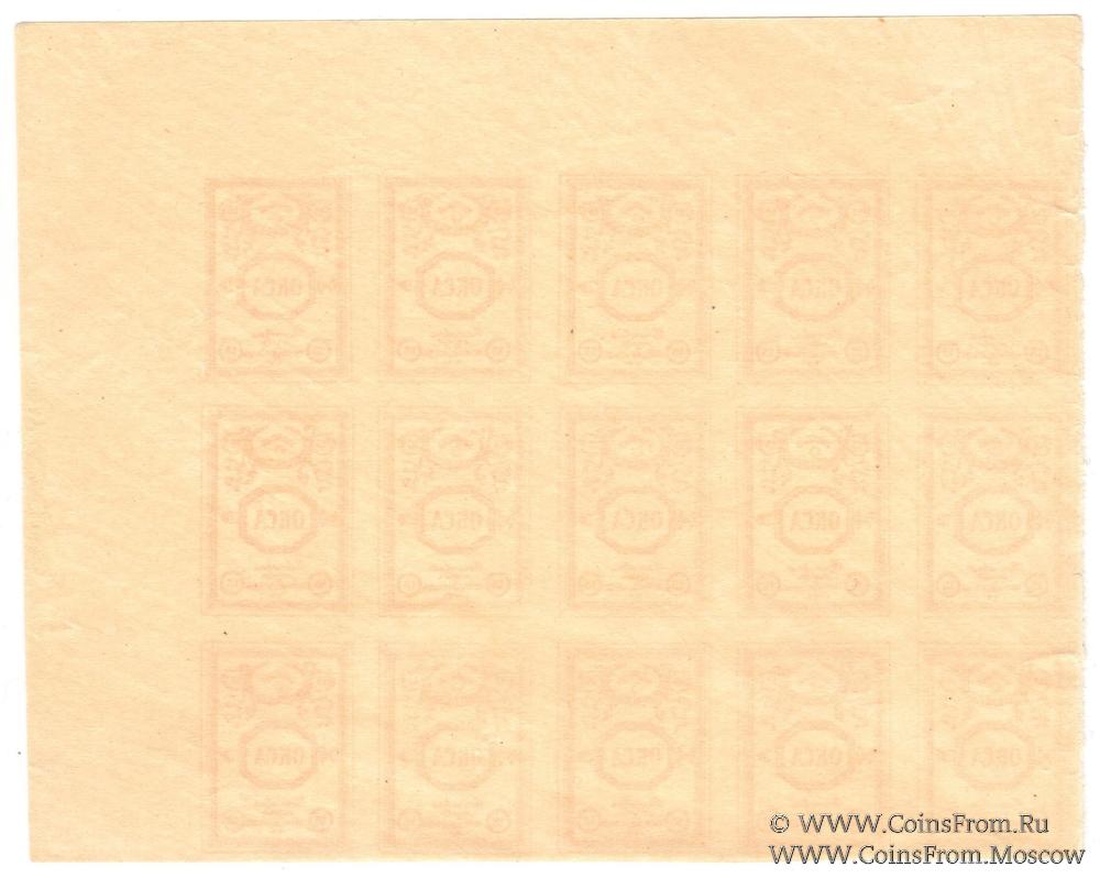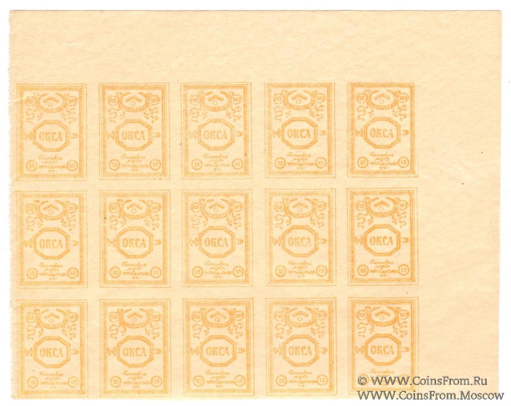 Почтовая марка ОКСА. Блок из 15 марок. Край листа. Аверс отдельно. Жёлтая.