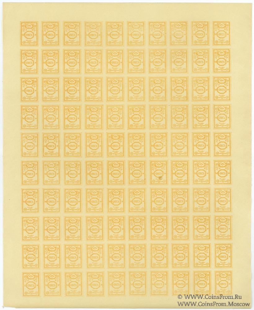 Почтовая марка ОКСА. Полный лист 100 шт. Аверс отдельно. Жёлтая.
