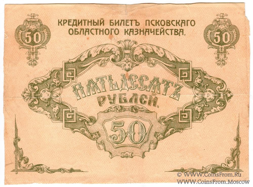 БРАК: недопечатан аверс, отсутствует реверс, без номера. Кредитный билет Псковского Областного Казначейства 1918 г.