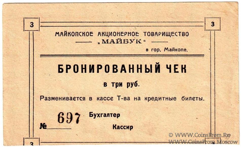 Бронированный чек без даты. Бланк. АКЦИОНЕРНОЕ ТОВАРИЩЕСТВО "МАЙБУК".