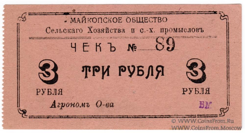 Чек без даты (1920 г.). Майкопское общество Сельского хозяйства и сельскохозяйственных промыслов.