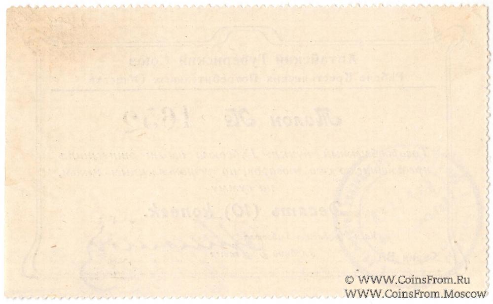 Талон без даты. Серия ВА. Алтайский Губернский Союз Рабоче-Крестьянских Потребительских Обществ.
