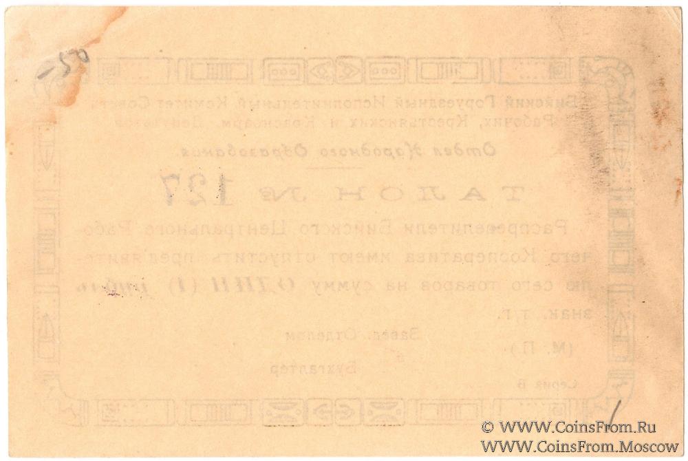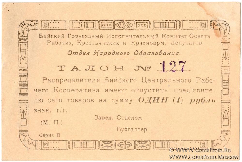 Талон без даты. Бланк. Отдел Народного Образования. Бийский Горуездный Исполнительный Комитет Совета Рабочих, Крестьянских и Крсноармейских Депутатов.