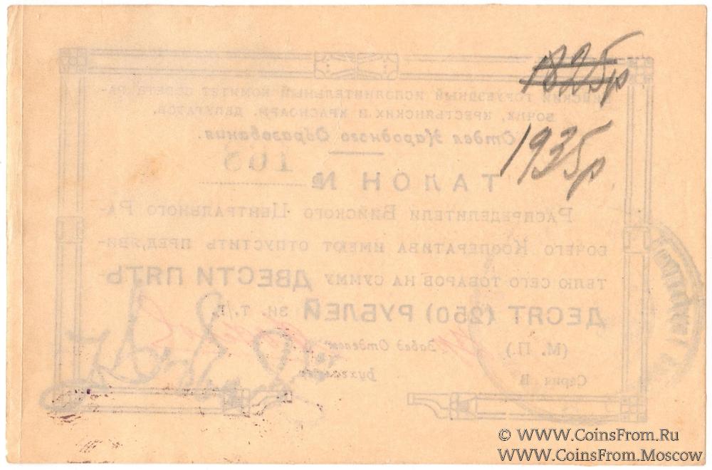 Талон без даты. Отдел Народного Образования. Бийский Горуездный Исполнительный Комитет Совета Рабочих, Крестьянских и Крсноармейских Депутатов.
