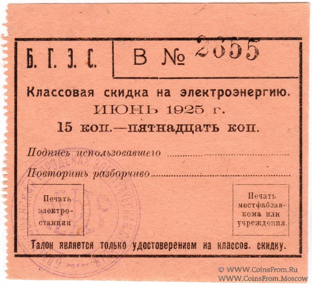 Печать круглая: "РСФСР" (по центру) / "БЛАГОВЕЩЕНСКАЯ ГОРОДСКАЯ ЭЛЕКТРИЧЕСКАЯ СТАНЦИЯ *" (по кругу).
