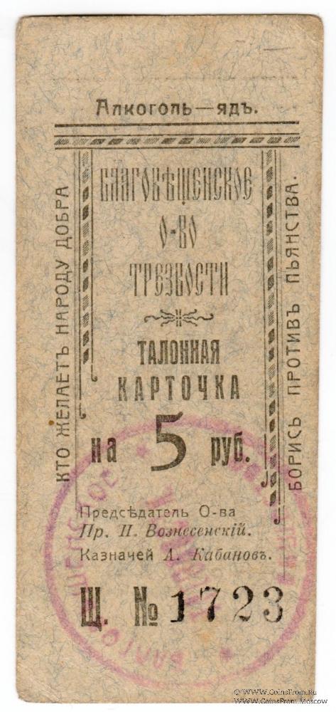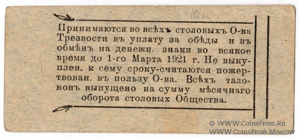Талонная карточка без даты (действительна до 1.03.1921 г.). Серия Щ. Печать красная. Благовещенское Общество Трезвости.