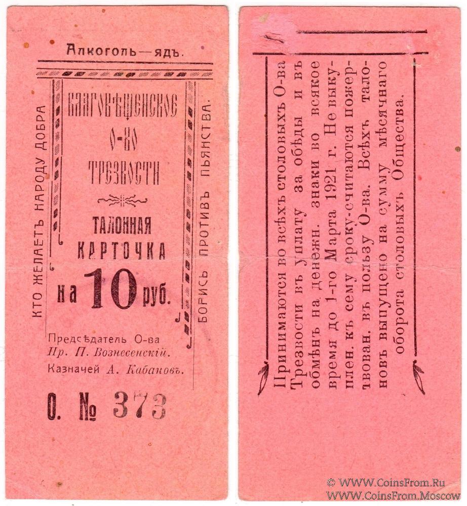 Талонная карточка без даты (действительна до 1.03.1921 г.). Серия О. Благовещенское Общество Трезвости.