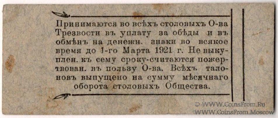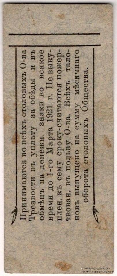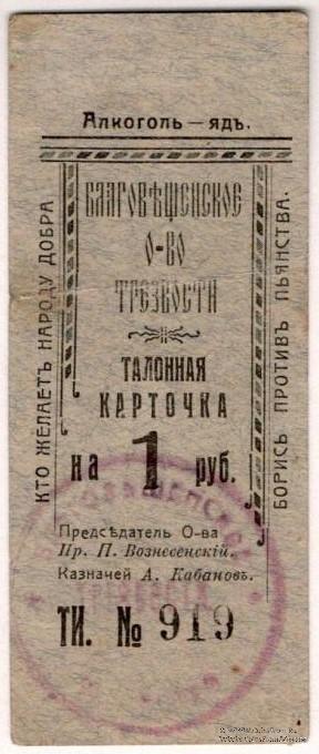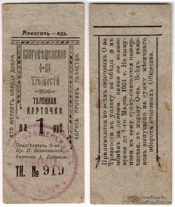 Талонная карточка без даты (действительна до 1.03.1921 г.). Серия ТИ. Благовещенское Общество Трезвости.